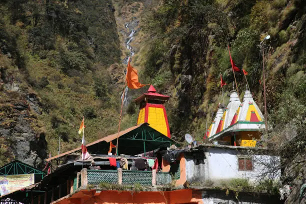 The revered Gangotri Temple is dedicated to the goddess Ganga. The temple closes during the winter months due to heavy snowfall and reopens in late April or early May.